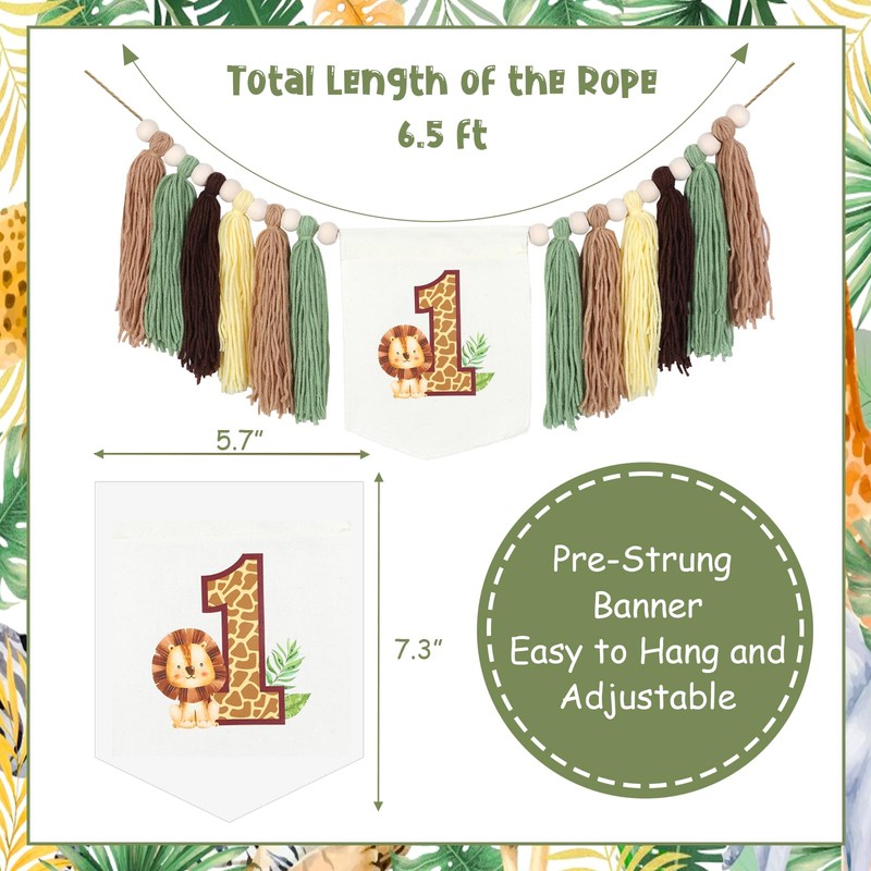 - Ready-to-use convenience: Our safari jungle birthday highchair banner is easy to set up, making it a addition to your party decor. Whether you're celebrating your little one's birthday or decorating their room, it's ready to go. It adds a touch of charm and warmth.