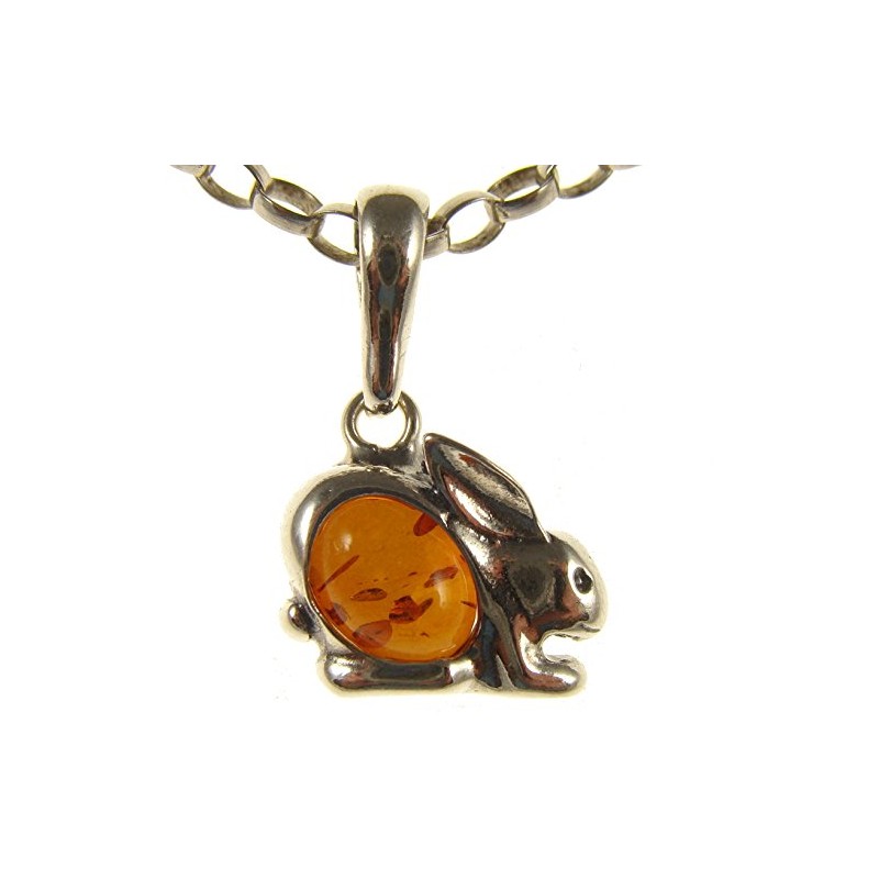 Baltic amber and sterling silver 925 cognac rabbit animal pendant (no chain)
