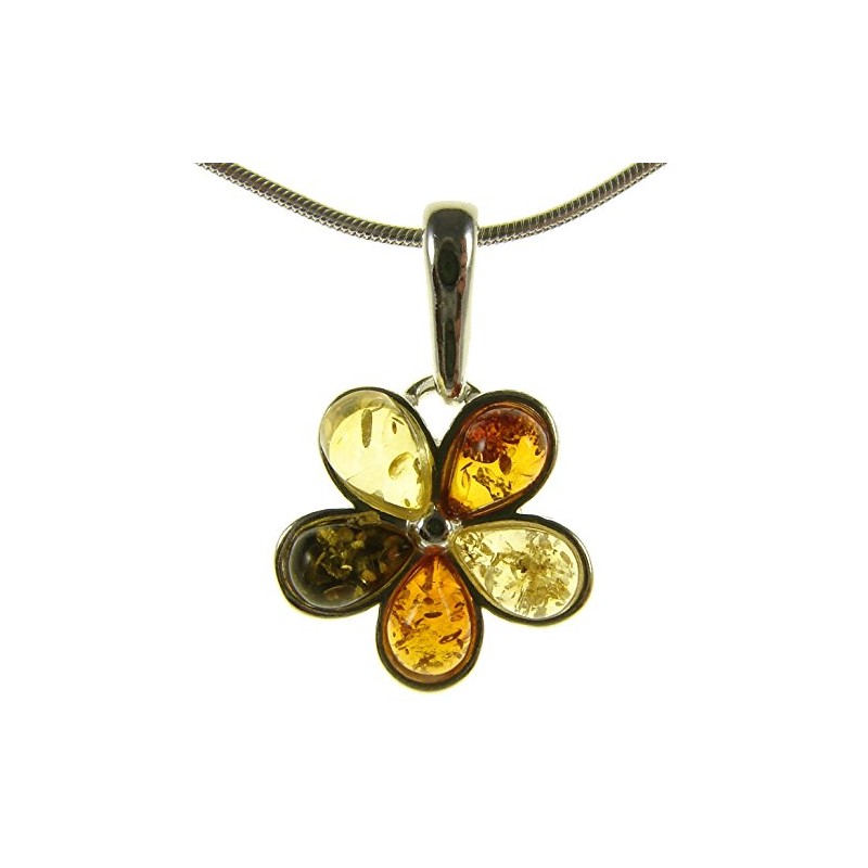 Baltic amber and sterling silver 925 multi-coloured pendant (no chain)