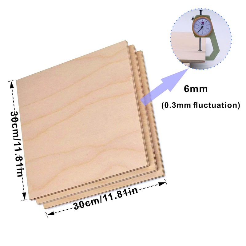Baltic Birch Plywood 6mm 1/4x12x12 Craft Wood B/BB Grade Baltic Birch Sheets,Perfect for DIY Projects, Laser,Painting,Drawing, Wood Engraving, Wood Burning,CNC Cutting and Laser Projects (3pcs)