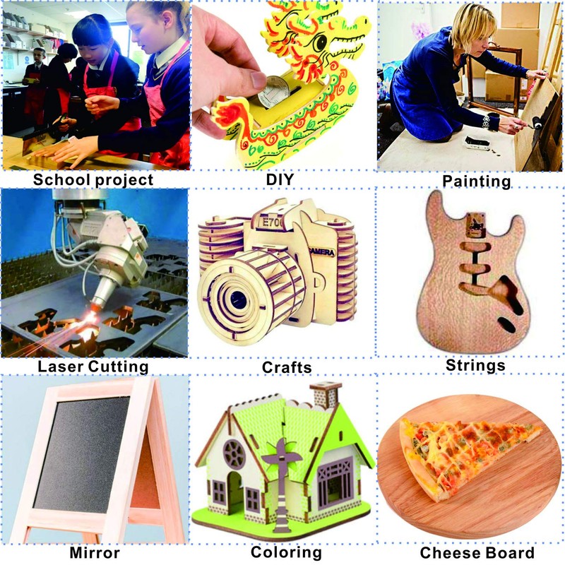 - USES : Perfect for Arts and Crafts, School Projects and DIY Projects, Drawing, Painting, Wood Engraving, Wood Burning, Laser Projects, and Cabinetmaking.The thick layers of this Baltic Birch Plywood are intended to easily cut through saws and laser cutters, making it the ideal plywood for any production woodwork