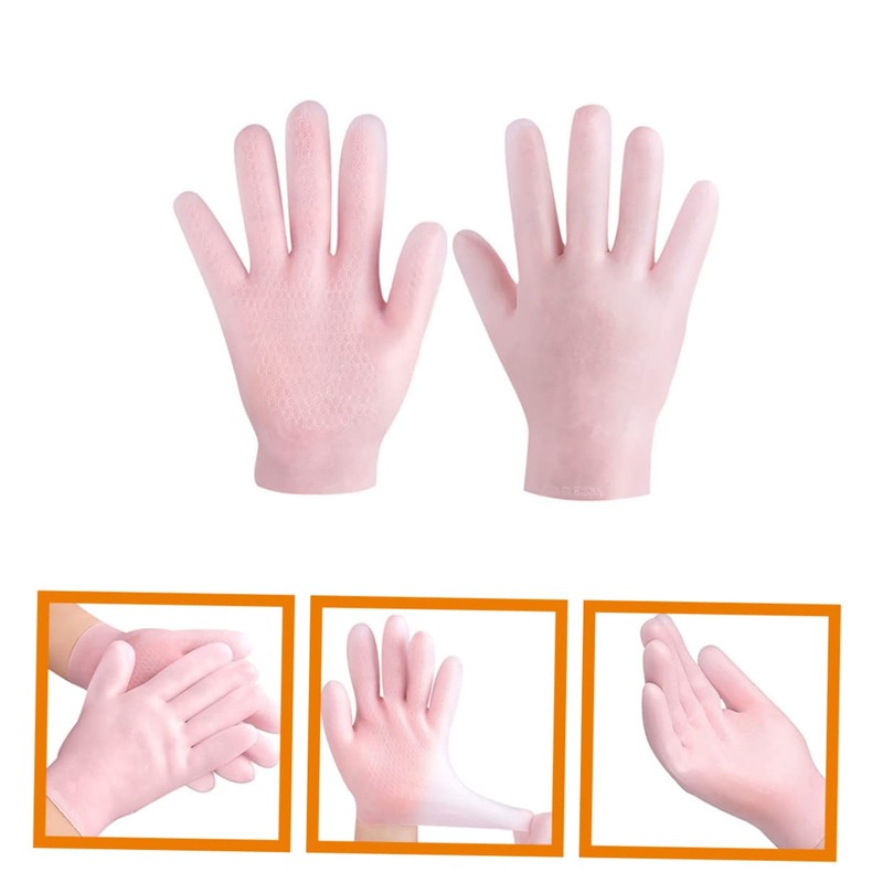 Baluue 1 Pair Nourishing Care Gloves Achy Spa Moisturizing Men Reusable Manicure Kit Softener Ladies Sleep for Dry Hands Nails Lace Footmask Exfoliating Pamper Gel Fingerless Pink Sebs