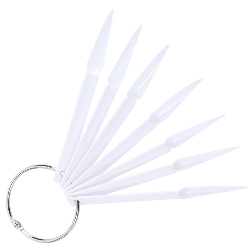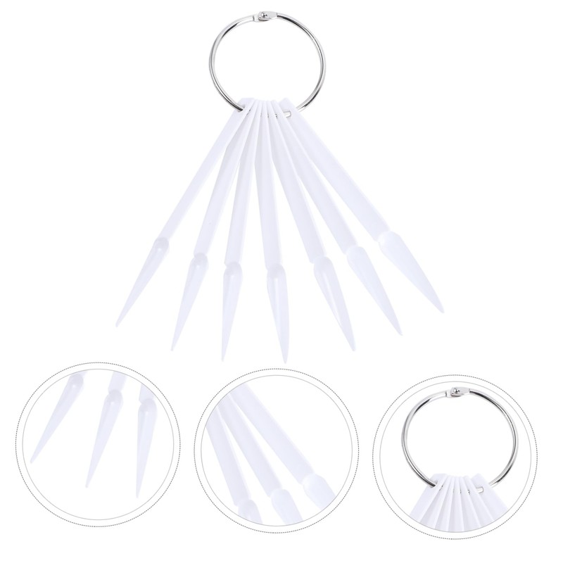 nail display card - Can be used as practice chart for freshmen to engraving and painting.nail color plates The can display many colors, which is suitable for professional or home use.nail tips palette - The product is for nail art display, practice and color palette.nail display boards for freshmen to practice nail art techniques and nail artists to create nail designs.nail practice tips - Material: Plastic and metal. - Size: About 13x1. - It is easy to add, remove and reorder the nail tip stick- Made of material, smooth with no burrs. 4x1 cm. It is not only a practice template, but also a great your friends who love nail art. This item is manufactured with material for durable and use. Feature- Color: White. - The fan shape with convenient to carry and use. Simple and creative design shows its practicality