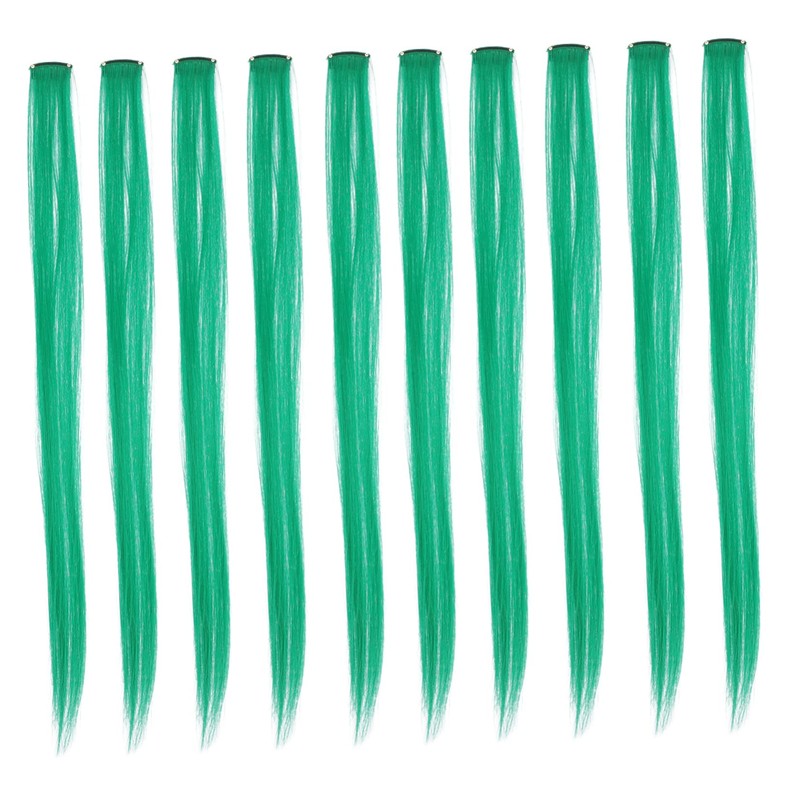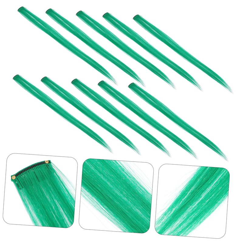 Baluue 10pcs Green Clip-in Hair Extensions Straight Tinsel Hair for Women for Cosplay Parties and Festivals Lightweight Easy to Blend No Chemical Treatment Required