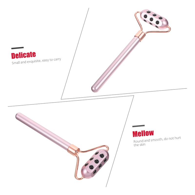 - Holding the handle, massage the whole body gently rolling with particles in the forehead, face, of eyes, lower forehead, neck, arm, arm, thigh, leg, etc., and massage with skin care products at the same time. Note: massage with a moderate, comfortable massage force, please do not force too much, otherwise it will accidentally hurt the skin. Do not use it if you are allergic to metals Comfortable Facial Roller