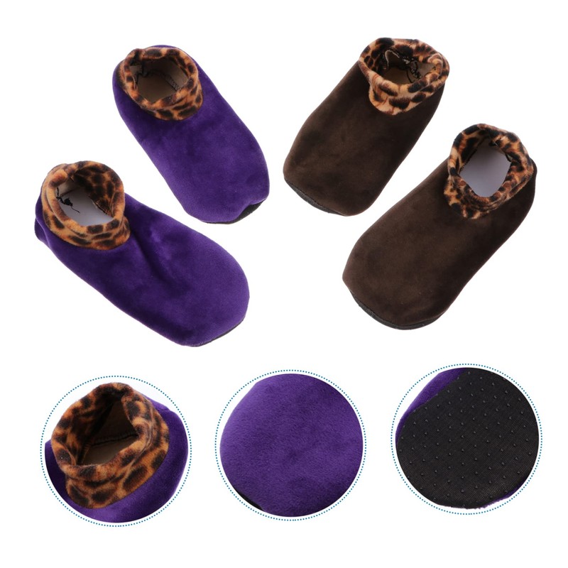 Baluue 2 Pairs Warm Leopard Print Sleeping Stockings for Women Thickened Household Floor Socks Comfortable Non Slip Design for Winter Use for