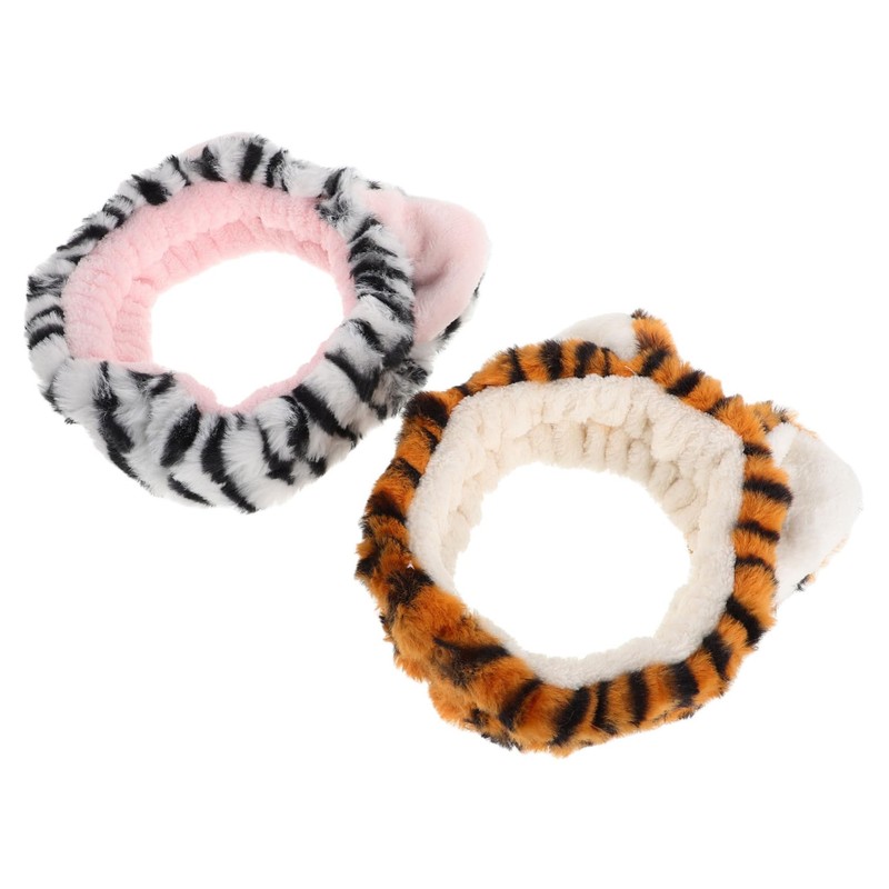 Baluue 2pcs Animal Ears Makeup Headband for Face Wash Skincare Cute Fuzzy Hairband Tiger Print for and Cosmetic Use