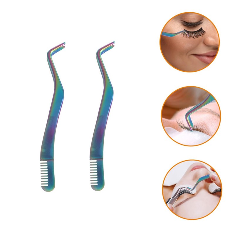 Baluue 2pcs Eyelash Tweezers with Comb Combs Lash Tool Eyebrow Tweezers for Women Professional Eyebrow Tool Tweezers Precision Eyebrow Pick Tweezers Precision Tweezers Stainless Steel