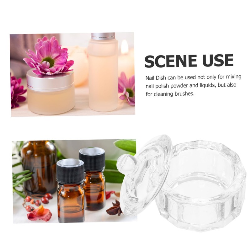- Manicure nail dish:nail dish can be used not only for mixing nail polish powder and liquids, but also for cleaning ,glass dish for acrylic nails
