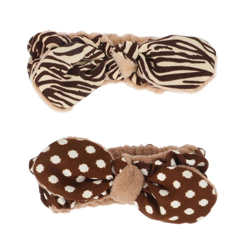 Baluue 2pcs Plush Makeup Headband for Women Hairband Bow for and Comfortable Face Washing Accessories Striped Dot Styles
