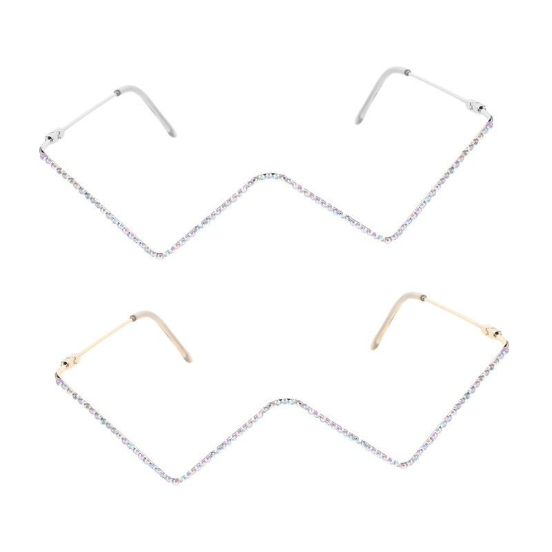 Baluue 2pcs Shaped Rhinestone Eyeglass Frames Without Lenses Glittering Costume Accessories for Parties and Christmas Celebrations Lightweight Metal Design Versatile Style for All Face