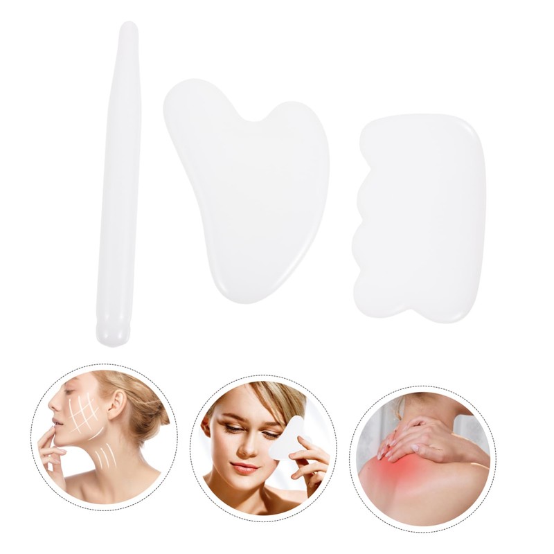 Baluue 3 Sets 3pcs Facial Massager Body Care Tool Scraper Natural Jade Kit Ergonomic Handle