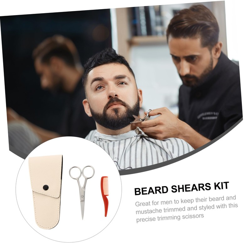 Beard Scissors Beard grooming kit, the kit includes scissor, comb and storage bag, it is wonderful helpers for men to take care of their beard.men beard scissor Why not have a look and bring these tools home? After all, a smooth beard can add your male charm and make a good impression on others