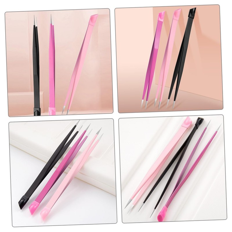 Baluue 3pcs Multi-purpose Nail Tweezers Dual-ended Precision Tweezers for Nail Art Eyelash Extensions and Sticker Application Design Pink Black Rose Red
