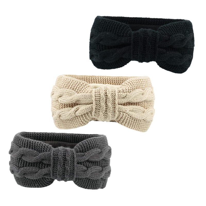 Baluue 3pcs Winter Hairband for Women Twisted Bow Ear Warmer Headwrap Fuzzy Lined Elastic Headbands for Girls for Outdoor Activities and Cold Weather