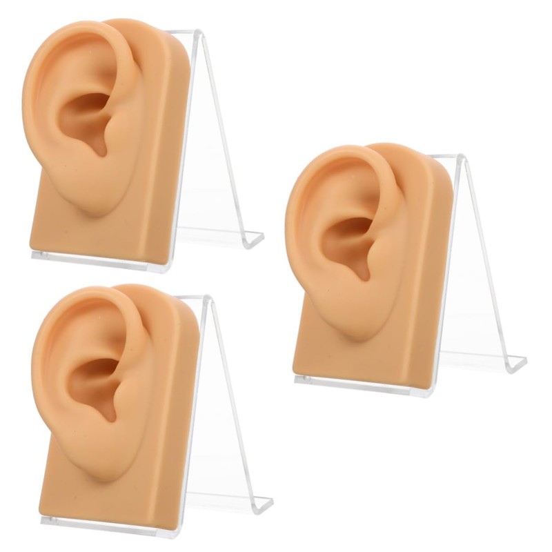 Baluue 3sets Decorative Ear Model for Jewelry Display Multi-function Earring Holder Stand Right Ear Design for Piercing Practice and Cleaning Exercises