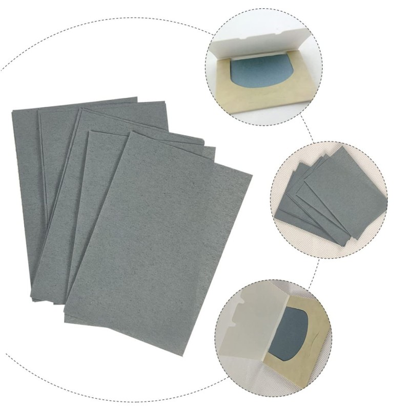 - Oily-- face blotting sheet, to absorb oil around the nose or other parts of the face, including the t- zone.