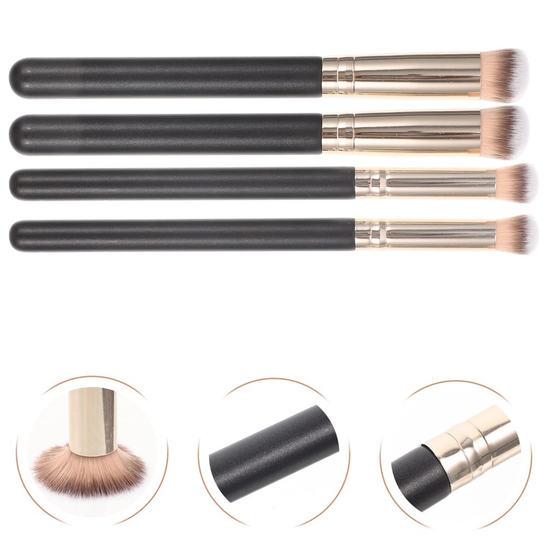Baluue 4pcs Concealer Brush Set Angled Cream Contour Makeup Tools Natural Wood Handle Skin-friendly Makeup Brushes for Loose Powder
