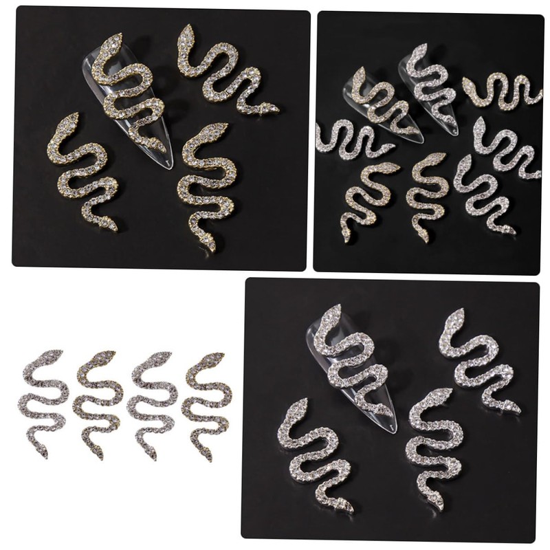 Baluue 4pcs Snake Charm Nail Gems Gems Nail Art Charms DIY Manicure Decor Unique Adornments for Natural Artificial