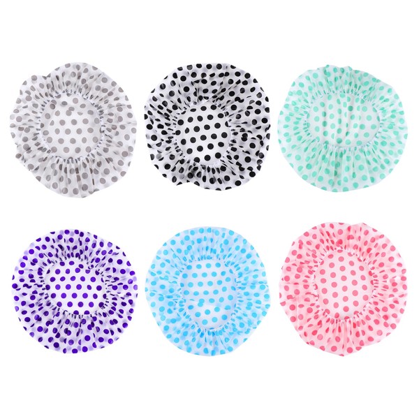 Baluue 6 Pack Women's Waterproof Spa Shower Cap Elastic Headband Peva Material Reusable Bathing Hat Dots