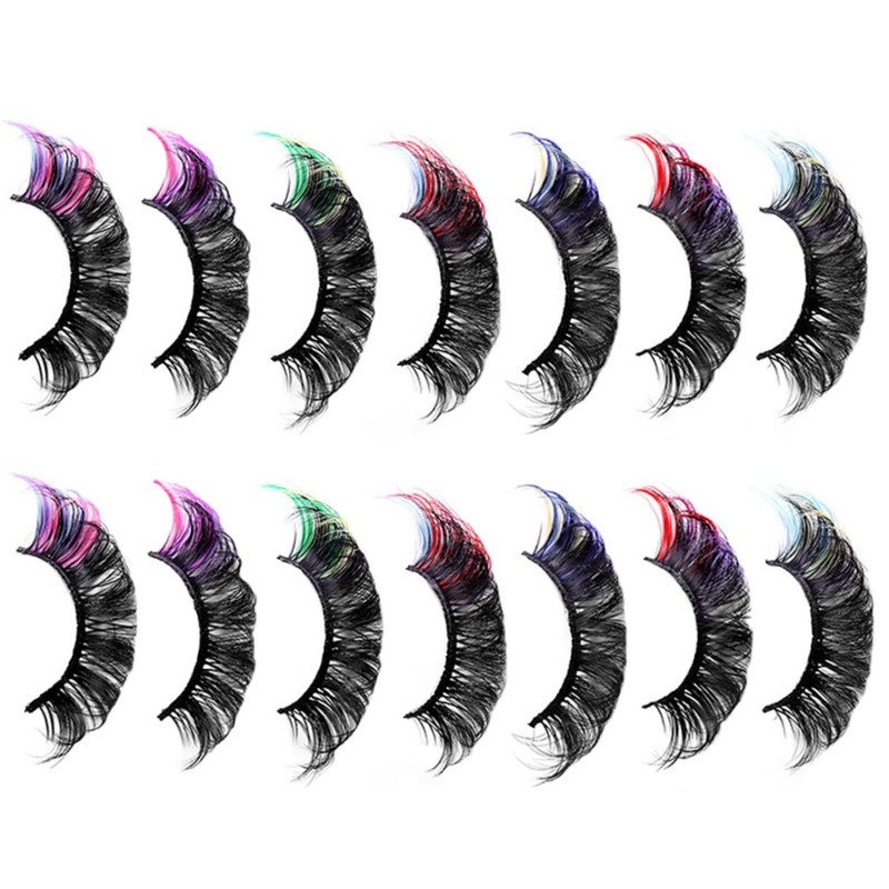 Baluue 7 Pairs Colored False Eyelashes Eyelash Stickers Fluffy False Eyelashes False Colored Lashes Cosplay Eyelashes Glitter Lash Extensions Cat Eye Lashes Fake Eyelashes Imitation