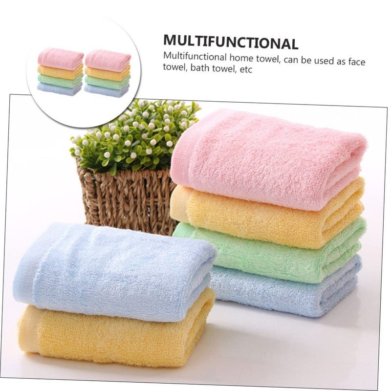 Baluue 8Pcs Soft Absorbent Face Towels for Gentle Washcloths Yellow Pink Green and Blue for Cleaning Breathable and Skin Friendly for Daily Use