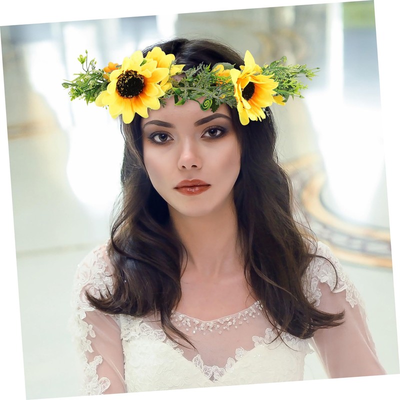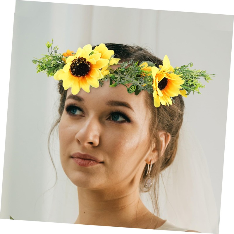 Baluue Bohemian Sunflower Hair Garland for Weddings Elegant Floral Wreath for Brides Charming Hair Accessories for Festivals and Special Occasions and Skin-friendly Design