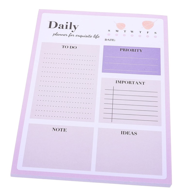 • Daily Planning Notepad: paper materials made, enables you to write in a smooth way, give you better using feeling.