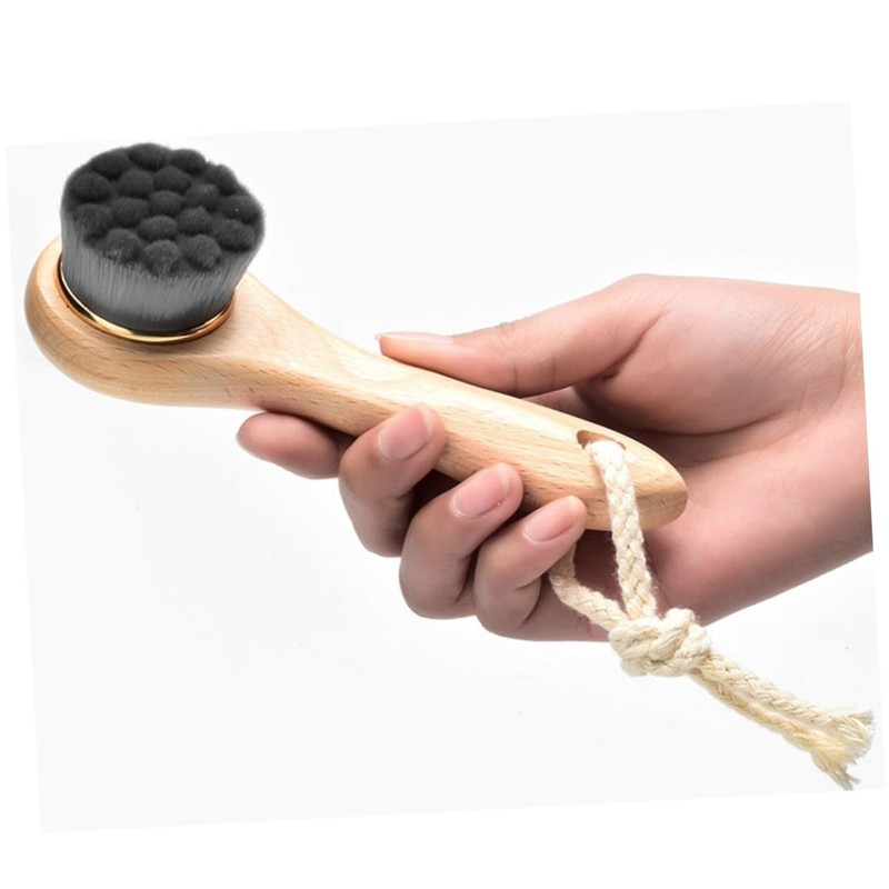Baluue Facial Exfoliator Tool Skin Cleaning Brush Wooden Handle Deep Pore Cleansing Face Brush for Blackheads Random