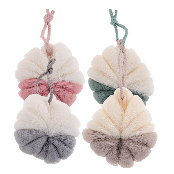 • Loofa ball--you can exfoliate, clean, soothe skin with care body wash soap or shower gel when lathering, and the friction is comfortable,shower loofah