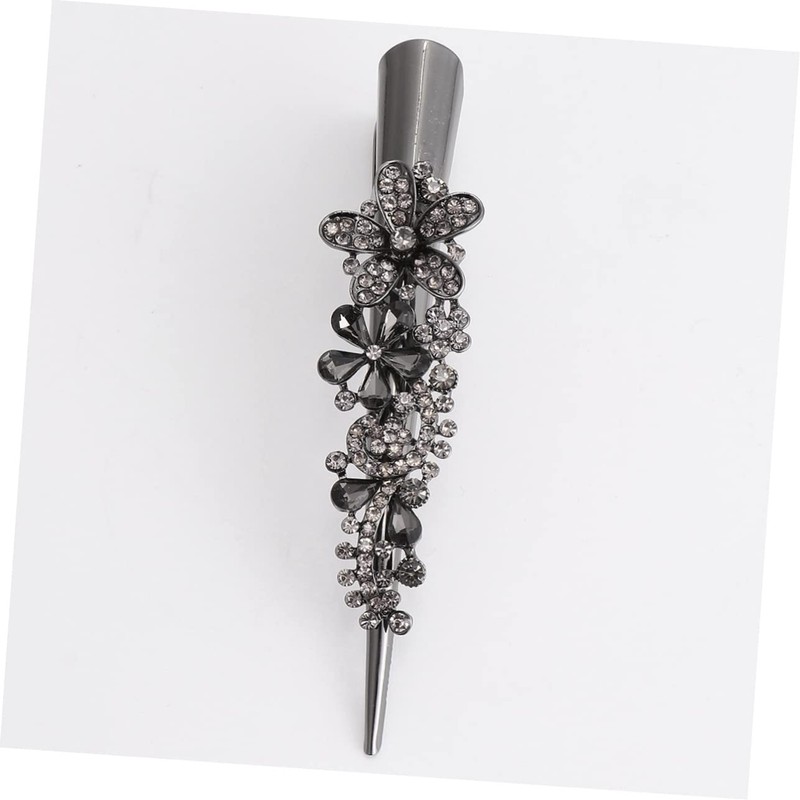 Baluue Retro Horn Hairpin Duckbill Clip Rhinestone Studded Bobby Pin Hair Styling Barrette Grey