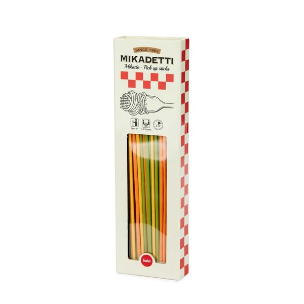Balvi - Mikadetti balvi table game Mikadetti Mikado-like skill game in spaghetti version bamboo. Original design. Italian Mikado-like version consisting of spaghetti sticks in different flavours. Comes with a box of the game in the design of a noodle pack. Fun. Remove spaghetti around spaghetti without moving the others. Each colour represents a different score. Collect the most points and win the game! The ideal gift. Can be used anywhere