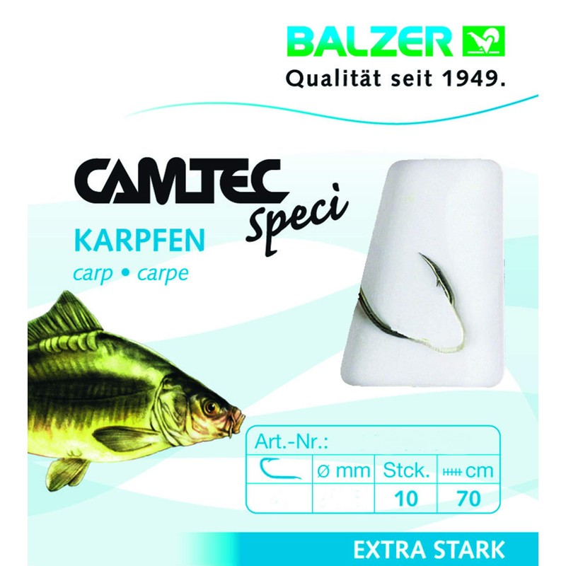 Balzer Camtec Carp Hooks 70 cm - 10 Tied Fishing Hooks, Hook Size/Line Diameter: Size 2/0.35 mm