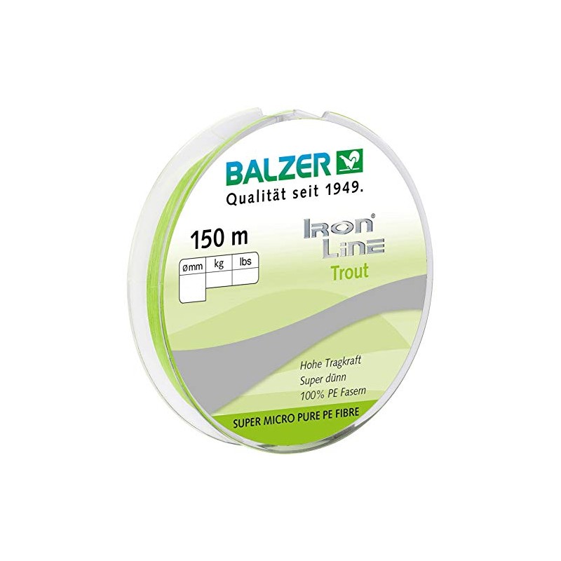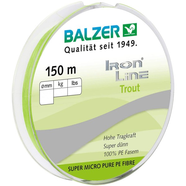 Balzer Ironline Trout 150 m Triple Braided Line for Trout, Colour: Chartreuse, Diameter/Load Capacity: 0.04 mm/2.8 kg