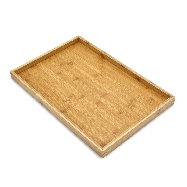 Bam & Boo offers a variety of 100% natural bamboo accessories to help you stay organized and with the latest styles while staying sustainable. Bam & Boo Natural Bamboo Rectangle Serving & Vanity Tray. Can be used in a variety of settings such as kitchens, weddings, offices, bathrooms, coffee tables, drawers, shelves, stores, restaurants, cafes, bars, desks, and more. Carry a variety of items including but not limited to coffee, tea, pastries, snacks, cologne, perfume, utensils, stationery, spices, ingredients, decor, and much more. The thin and lightweight design makes it easy to use while still providing a sturdy and flat surface to carry and store items. The raised edges will help you keep items from falling off the tray. The newly designed corners are reinforced to withstand falls and drops without breaking. The natural bamboo is easy to clean with a simple rinse of water. Avoid cleaning the tray in the dishwater. Let the tray air-dry or with towels to maximize the lifetime of your tray. To further extend the use of your tray, apply a thin coat of mineral oil to make it resistant to stains.