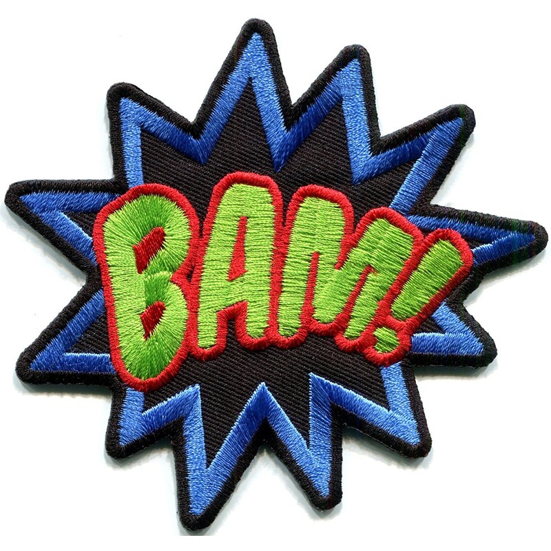 - BAM! superhero comics retro fun embroidered applique iron-on patch new