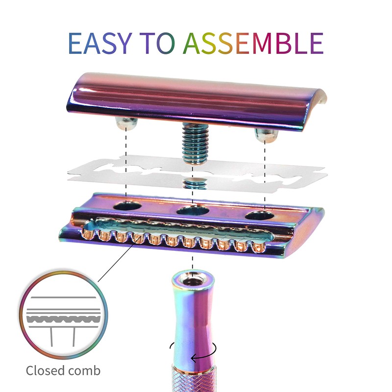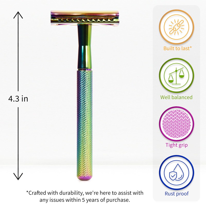 Bambaw Bambaw Double Edge Safety Razor with 5 Safety Razor Blades, Women & Men's Safety Shaving Razor, Reusable Razor, Plastic Free C Rainbow