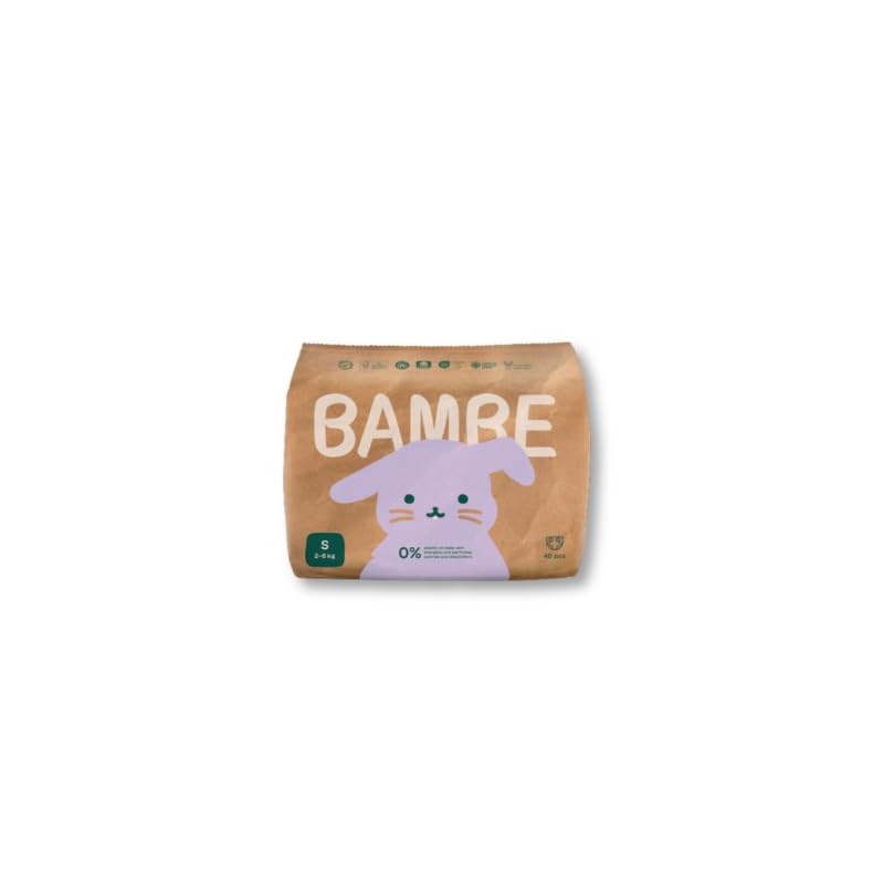 Bambe | Eco Nappies | Small | From Birth to 6kg | Approx 6-12 Weeks | Pack of 40
