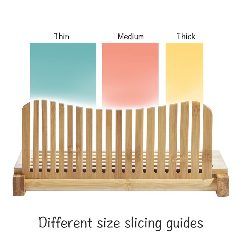 - 【Organic MOSO BAMBOO】Our bread slicer is made of high-quality bamboo. You can smell the light natural scent of bamboo. Compared to flimsy plastic cutting boards, it is safe, strong, and stable.