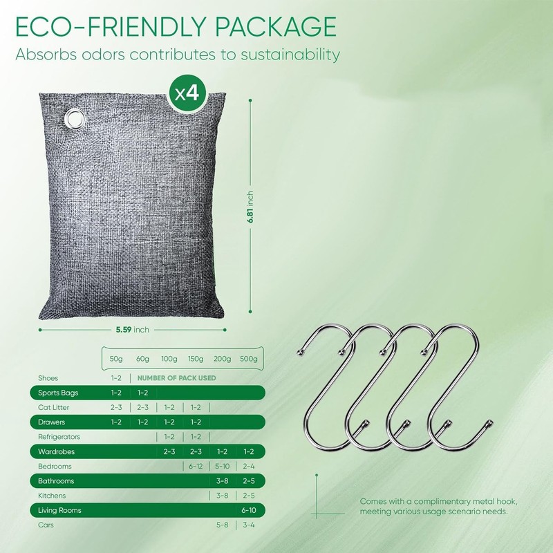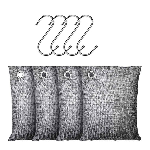 Bamboo Charcoal Air Purifying 4x200g with Hooks Nature Odor Eliminator for Strong Odor