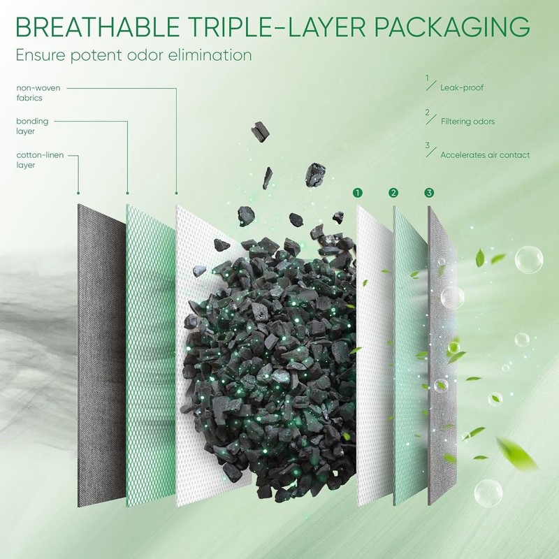 - THREE-LAYER DESIGN MEETS SUPERIOR ODOR ELIMINATION - Bamboo charcoal bags odor eliminator for home with breathable fabric prevents charcoal dispersion and accelerates air , filtering odors without compromising airflow, ensuring continuous and potent odor elimination for smoke odor absorber.