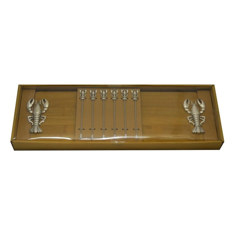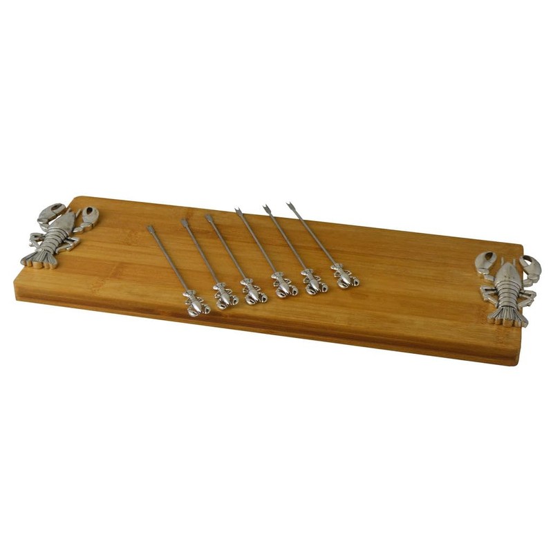 Bamboo Cheese Board Charcuterie Platter Set with 6 Lobster Anchor Appetizer Fork Picks in Silver