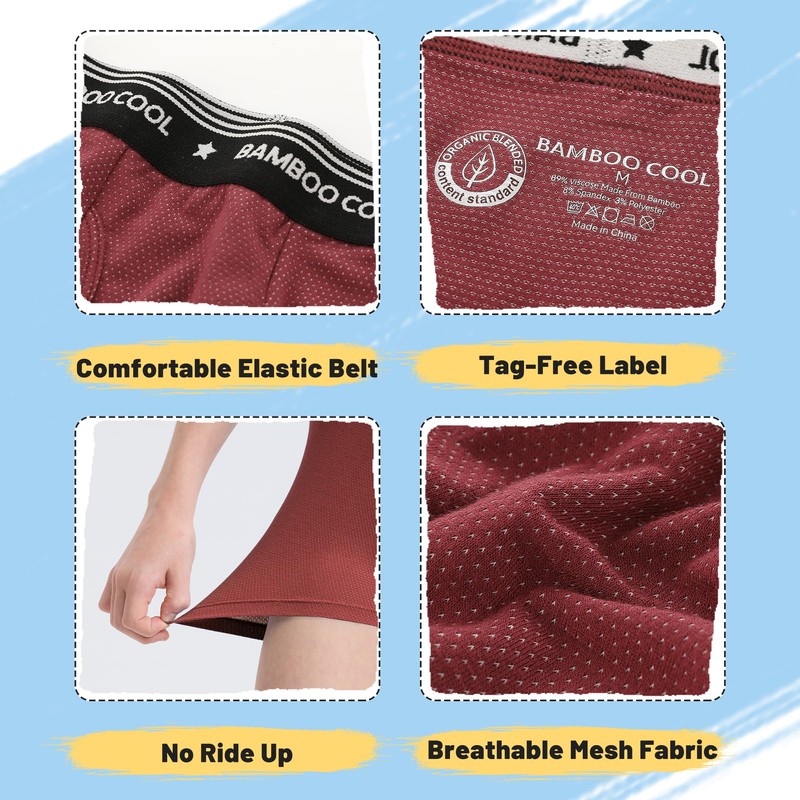 BAMBOO COOL Boys' Big Performance Boxer Briefs Breathable Moisture-Wicking Mesh Underwear Multicolor 6 Pack