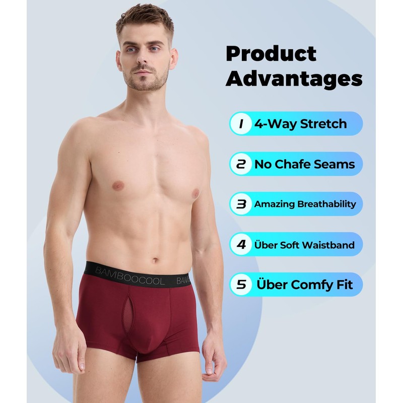 BAMBOO COOL Mens Trunks Underwear Performance Breathable Mesh Fly Zone Moisture-Wicking(4 Pack)