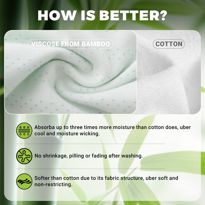 - HIGH QUALITY FABRIC- Made of 91% viscose made from bamboo, 8% spandex and 1% nylon. The fabric is soft and breathable, moisture wicking and sweat wicking, regulating temperature.