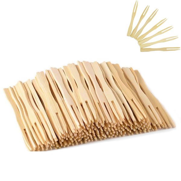 Bamboo Fruit Forks, 400 Pieces, Disposable Bamboo Forks, Party Mini Fruit Cutlery, Finger Food Appetizer, Cheese Fork, Cocktail Tableware for Home Dessert