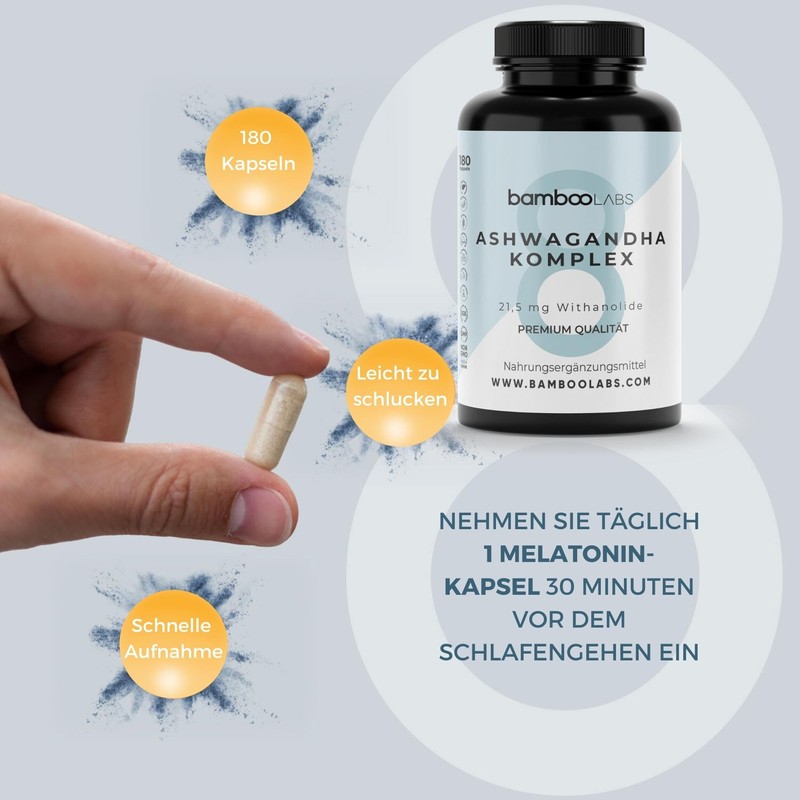 Bamboo Labs - Ashwagandha Capsules with Withania Somnifera Dry Extract, 180 Ashwagandha Capsules High Dose, Reducing Anxiety and Stress