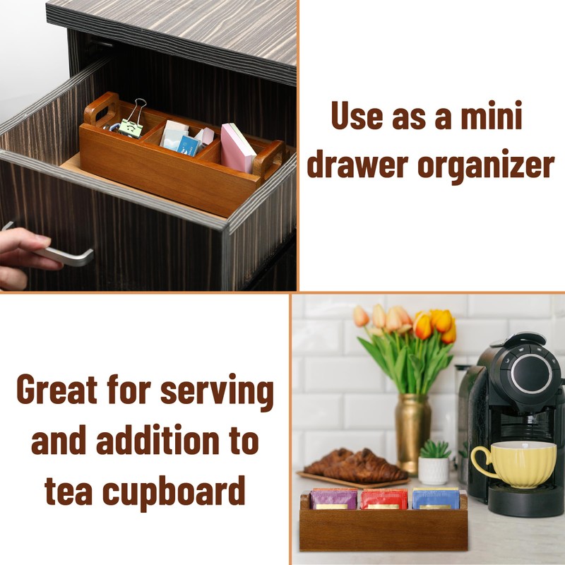 BAMBOO LAND- Tea Bag Organizer, 3 Compartments, Wooden Tea Bag Holder Organizer