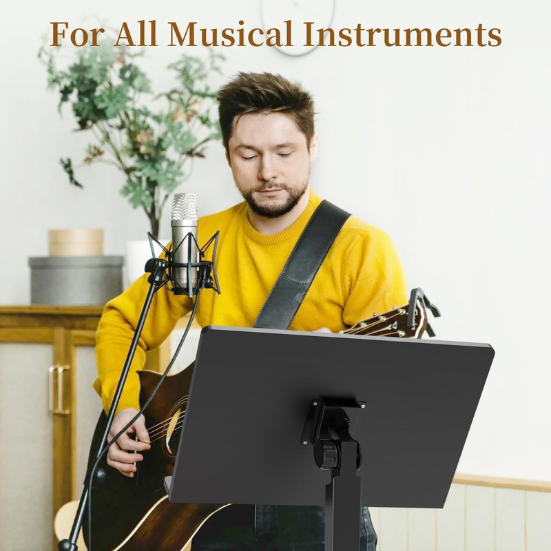 - 【Extendable & Adjustable Design】With a 15.75 in x 11.4 in sheet music table stand and adjustable height (39.37 in-51.2 in), can hold any kind of music sheet, book, Tablet, or laptop
