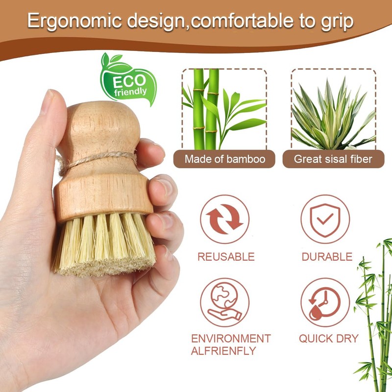 - High-quality bristles: the brush is made of 100% natural sisal, the natural material has strong decontamination. The bristles are moderately soft and hard, the handle is made of natural bamboo wood. The natural scrubbing brush is well made, easy to use, no shape.